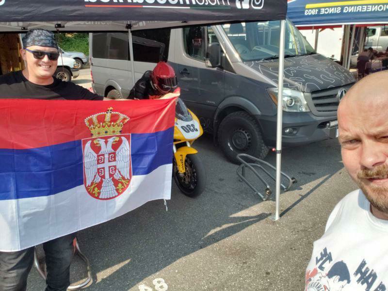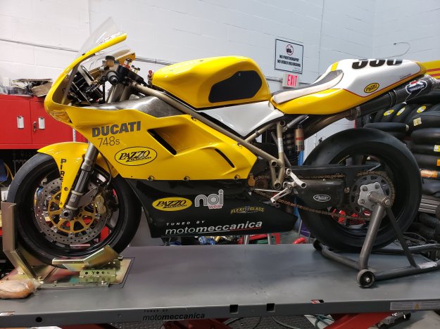 Негде седам дана пред праву трку ове кратке тркаче сезоне. Тоби ме наговара да возим поред СВФ650 и 748 и РСВ4. Размишљао сам пар дана и дошао до закључка да није реално да возим три мотора. Одлучио сам се на СВФ650 и 748, Сузуки морам да возим због поштовања према Џејмсу и Џејмију, а 748С јер прествља моју радионицу и мене као бласника сервиса и сервисера који спрема и пази талијанске даме. Тркачи оклопи су били код фарбара и биће готови за који дан, остало је само да буквално извућемо 748 испод хрпе делова и да га упалимо. Кад смо то урадили и ставили 748 на радни сто, сетио сам се оног цртача Мики мауса кад су склапали неки брод. И на катрају се распао кад су га убацили у воду и разбили шампањац о њега, а Мики јер рекао “читава мудрос је саставити га”… знао сам да сам скинуо пумпу за гориво из резервара да би странка са Ф4 мога да се вози и да сам скинуо кедер са кучишта филтера ваздуха из истог разлога. Акумулатор литијумски је стајао пет година и нисмо могли да га повратимо у живот. Још уз пумпу за гориво и кедер фалио је један релеј за убризгавање и чип из рачунара. Кад смо све вратили шта је фалило, мотор није хтео да упали, погледамо мало боље шта још фали, кад оно нема аутомат за анасер, срећа имао сам и то на лагеру. Завергла пар пута и упали, али ради на један цилиндар, проверимо шта је сад, кад му фали кабал од свечице хоризонталног цилиндра… хахахахаха. Шта је следеће… главни кочиони цилиндар је фалио као и помоћи цилиндар квачила. Коначно 748 је комплетан и ради како треба. Негде из нафталина сам извукао коване точкове које личе на фабричке точкове од 848, али су за 748 серију. Уз њих сам добио скоро нове предње брембо дискове. Монтитао сам нове гуме од Пирелија 120/70/17 и 190/60/17 којим је Пирели заменио 180/60/17. Одлучио сам да подесим висину задљег амортизера и спустио сам за пола круга на подешавајучој полуги. Због стајања задњи амортизер није радио, па сам морао да сервисирам амортизер. Полсе тога уследило је детаљно прање целог мотора да изгледа пристојно после пет година скупљања прашине. Остало ми је само да заменим старе кочионе плочице са новим СБС ДЦ и мотор је био комлетан за тркање. Ни сам нисам зано колико са делова поскидао да би помогао странкама… субота на недељу радило се све до 05:00Ч. Недељу смо провели тако што смо спаковали оба мотора у приколцу са свом опремом и одвезли се до стазе да заузмемо место у боксу. Ту смо се срели са старим пријатељем Џејмијем и његоцим сином, отишли смо на већеру како то и достоји нашем пријатељству.