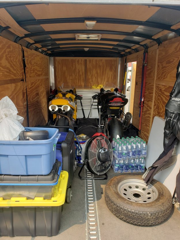 Понедељак нерадни дан (продужени викенд… дан провинциј или вам републике)… јутро је било мало облачно и милисало је на кишу. Која свом срећом није падала, а да јесте било би на тркама баш лепо јер нико није имао кишне гуме. Први тренин и ја излазим са 748С, већ после пар кругова мотор трокира и ради на једним цилиндру испод 6000 обртаја. Пред тренинг сам сипао 50% – 50% тркаче гориво са Шел 91 октаном. Препостављам да агрегат не воли ВИП МР12 тркаче гориво. На другом тренингу сам возио СВФ650 и одвоза сам треинг солидно, тј био сам задовољан. Кад сам се вратио покушао сам да установим зашто 748С трокира и открио да хоризонтална свечица не ради. Кренули смо у потрагу од Ванкувера до Мишена све ауто радње које пордају делове нико нема ту свечицу. Имају у складишту ,али не у радњи и немогу да ми доставе због празника. Пронашли смо неку Шампион и то само једну. У међувремену сам одвозио прву трку дана (опен класик супербајк), иако је мотор трокирао успео сам да завршим на тречем месту али сам био око 30 секунди иза првог места. Што ме није много бринуло, јер за следећи пут бићу спремнији. Пред почетак друге трке (мидлвејт супербајк) сам заменио хоризонталну свечицу и мотор је опет радио на два цилиндра. Стартујем трку са прве позиције јер сам 2019 завршио на другом месту у шампионату, а тркач који је био шампион не вози ове године. Кречем одлицно, али ме престижу двојица, где им ја врачам на остатку правца. Трој са Хаскаварном покушава да ме заобиђе са спољашње стране пред прву кривину. Ја само отпуштам кочницу и продужим неких 10ак метара да га блокирам и ту ми се отвара пролаз кроз прву кривину. Трој и Брет су били немоћни да одговоре 748С и ја сам из круга у круг повечавао предност да би на карају трке имао 26.8 секунди предност. Следећа трка дана је била мидлвејт твинс, где сам возио СВФ650. Стартујем са друге позиције јер сам тако и завршио шампионат 2019. Опет одлично кречем, али ме Брет претиче са унутрашње стане и пролази кроз прву кривину први. Из неког разлога Брет кочи сувише рано пред другу кривину и ја га обилазим са спољашње стане, где му затварам путању и избијам на прво место. Из круга у круг сам повечавао предност и све тако до четвртог круга. Где сам па улзу у пету кривину пао јер ми је проклизао предњи точак. Имао са преко 15 секунди предности, а нисам ни знао… Шта да се ради то је тркање. Избор тврдоче предње гуме ме коштало 25 поена… идемо даље у питању је кратка сезома и ја сам наставио где сам стао септембра 2019, што није случај са осталим тркачима у класама у којим се такмичим.