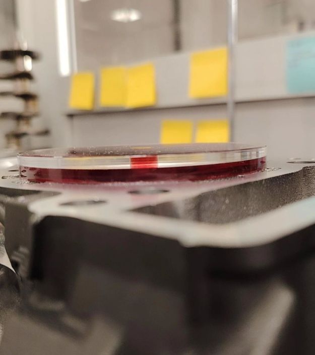 Да би се добила запремина чела клипа мора да се направи алат од плекигласа. Колико знам нико не продаје овај алат и мног иду код стругара и праве посевно за сваки агрегат, па сам тако и ја правио за моје дукатије. Да би се добила запремина чела клипа, прво мора да се измери запремима самог алата којег сте направили. Нанесете танак слој товатне масти у цилиндар једно 5цм пре ГМТ( гортња мртва тачка ), а затим пажљиво окренте радилицу да клип дође у ГМТ. Намажите специјални алат од прексигласа истом товатном машћу и ставите тако да буде као покопац цилиндра. Пажљиво се сипа течност из мензуре док се алат не испуни у потпуности. Потом се очита разлика запремине течности у мензури. Ако одузмете обе запремине добит ће те запремину компресионог простора кад је клип у ГМТ. Ово се одради на сваком цилиндру да компоресиони простор буде у потпуности исти…