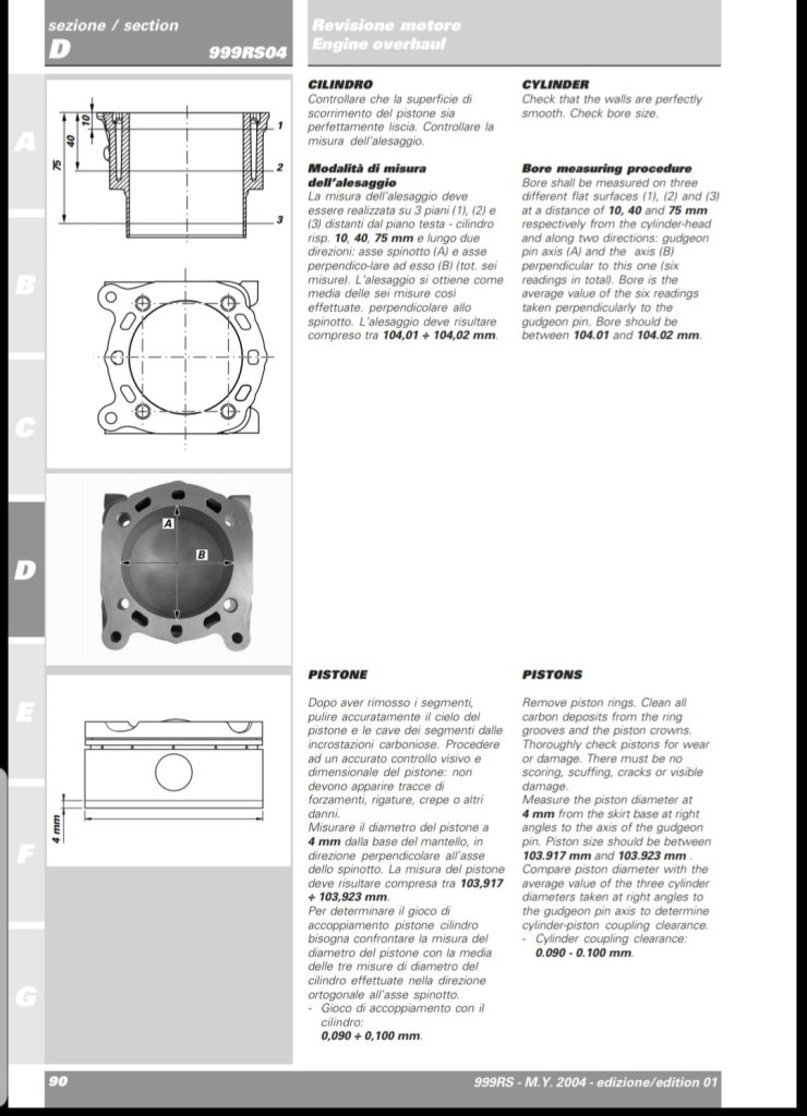 Један веома добар друг и можда најбољи сервисер којег познајем кад је Дукати у питању ми је рекао да једино требају карике да се разраде у агрегату. Све остало се склопи тако што се одреде зазори… на моје коментар па и на карикама се одређује зазор!? Добио сам одговор да се карике не дирају ни под коју цену. Схватио сам да су мишљена подељена и да то морам да уважим из поштовања према старијем и искуснијем колефи. Многи поризвођачи клипова препоручују да се поред прописаног зазора између клипа и цилиндра провери и подеси зазор на карикама. Кад сам почео све ово да учим давне 1993 фодине, око мене су били агрегати са гусаним цилиндрима или блоковима, а ретко сам виђао коване клиове. Нити један сервис у ком сам радио није имао мерне алате да се провери пречник цилиндра, многи су имали помично мерило (шублер) или микрометар. Као што сам пре спомињао у неким од мојих прича, машинској обради се давало сво поверење и веровало се у тачност њихових мерних инструмената. Купио сам субитор, сет спољашних микрометара да бих могао сам да проверим пречник цилиндра и да види да ли је овалан или округао и да би проверио тачан пречник клипа. Пре него кренем да објашњавам процес мерења клипа, карика и пречника цилиндра. Желим да нагласим да је веома важно да се клип добор прегледа и да се све оштре ивице настале током машинске обраде „оборе“, веома је важно да неби дошло до детонације унутар мотора кад се мотор угреје. Неписано правило је да све оштре ивице морају да буду тупе под ноктом. Било то на челу или на кошуљици клипа, не препоручује се да се било шта ради око канала за карике. Оштре ивице на кошиљици клипа могу да помоглу да се стублина (зид цулиндра) оштети током рада кад агрегат постигне радну температуру. Кад се клип пажљиво прегеда и кад се провери тежина сваког клипа у грамимима… ако треба да секлипови изједначе у тежинини, тада се отклони мало матријала са унутрашњестране клипа са рућном брусилицом на ваздух или струју. Сви произвођачи у својим сервисним књигама вам дају тачно где на кошуљица клипа треба премерити да би се добио тачан пречник клипа. По тој мери се подеси субитор и тако подешен проверава се пречник цилиндра на три различита места у хоризонталној и вертикалној оси. Веома је важно да се користе квалитенти мерни алати, јер ако не можеш прецизно да измериш стоте милиметра нема потребе ни да се упусташ у овако нешто. Може скупо да те кошта ако се клипови оштете због премало или превише зазора. Некада је било правило, (а многи се и даље држе тог правила) да на сваких 25.4 мм (или један цол) пречника клипа да цилиндар мора да буде 0.025мм вечег пречника. Данас због бољих легура и кованих клипова то правило више не важи, али је добор ако нисте сигурни који зазор треба да буде између клипа и стублине цилиндра. Неки произвођачи остављају на мајсторима да сами опдреде тај зазор, само зато што свако има своје мишљење или искуство или намену где ће тај агрегат да се вози или трка. Ако је цилиндар у дозвољеним толеранцијама следећи корак је да се провери зазор на карикама.