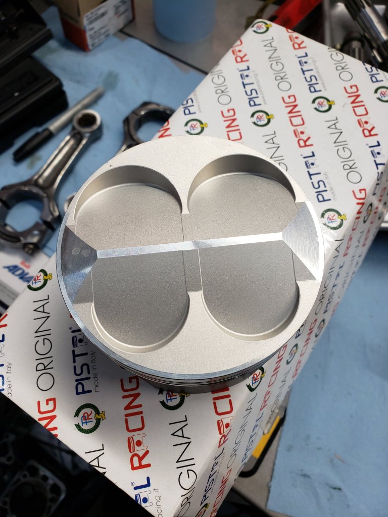 Као што видите горња слика је хоризонтални клип, а доња слика је вертикални клип који је окренту унутар стублине за 180 степени. Може да се види да су оба усисна вентила ударала у клип због тога. А коришћење бакарног спреја да се искористи стари дихтунг главе неби да коментаришем…